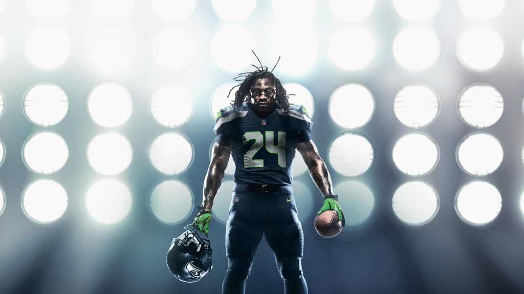 The 2012 season would be the first of another new era. Nike would take over as the exclusive and official outfitter of the NFL with uniforms along with sideline and practice apparel. The Seahawks would be the first team with new uniforms in the deal. The Seahawks would update their logo slightly, replacing the exclusive “Seahawk blue” for a wolf grey. The new uniforms would have 12 “feather trims” along each pant leg and around the collar as a nod to the fans. A new number font with green outlines, with the feather trims inside the numbering along with a custom wing design on the shoulders/sleeves. This would introduce an all navy home kit, a white road jersey and introduced the wolf grey uniforms as an alternate. 2012 reigned in the Pete Carroll and Russell Wilson era with the formation of the Legion of Boom. A season that would change the franchise forever.